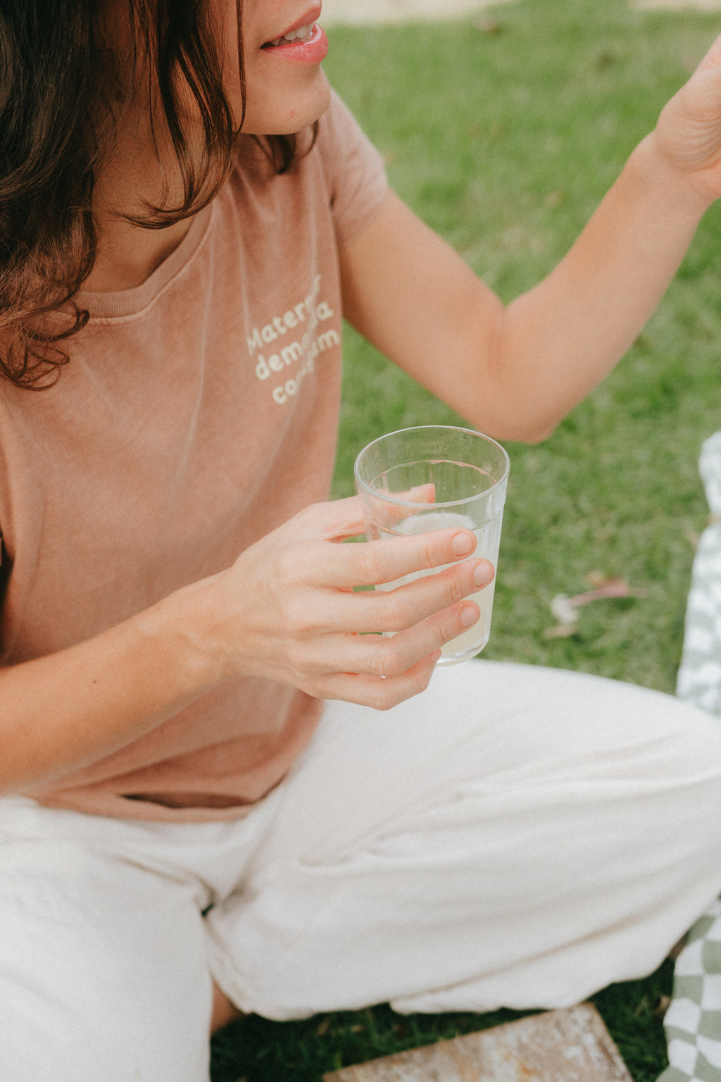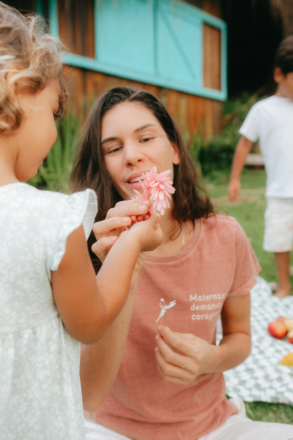 Em algodão premium 100% estonado e toque suave, ela veste como um manifesto vivo da maternidade real, aquela que sente, que erra, que aprende e segue, com o coração exposto e firme.